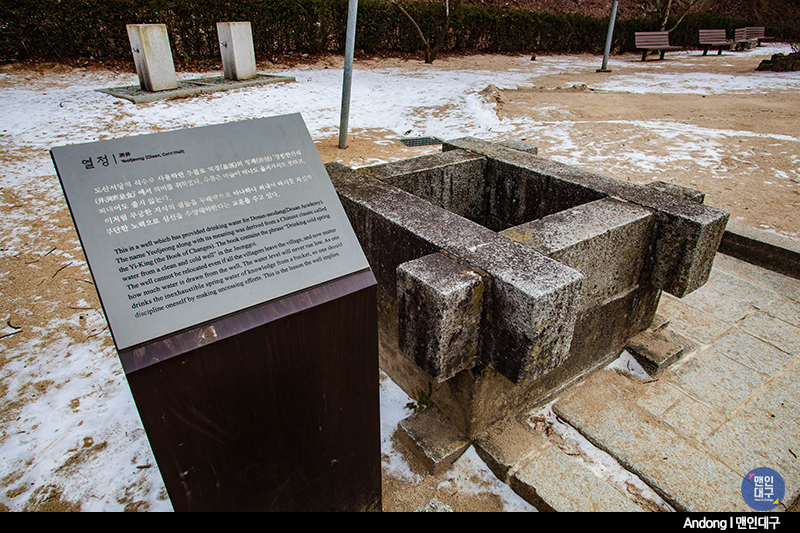 정문을 들어가기 전 우측에 '열정'이라 적힌 우물이 보입니다. 도산서당의 식수로 사용하던 우물로 마르지 않은 물처럼 끝없이 지식을 탐구하라는 그런 의미의 내용이 담긴 곳입니다. 한자로 우물정(井)을 쓰는데, 대부분의 우물은 둥근모양인데 왜 이 한자를 쓰는지 몰랐었어요. 그런데 이곳 도산서원의 우물을 보니 그제야 우물정(井)을 쓰는 이유를 알겠더군요.