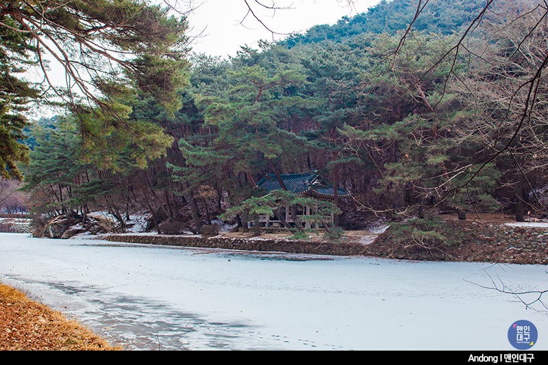서원 앞에는 죽계천이 흐른답니다. 죽계구곡에서 흘러오는 죽계천은 맑은 물과 함께 주변의 풍경이 예쁘다는 소문이 자자하죠. 비록 겨울에는 강이 꽁꽁 얼어 흰 눈이 소복이 쌓여있고, 나무들도 앙상하지만, 봄이 되면 아름다운 풍경이 나타날 것은 틀림없어 보였어요. 죽계천을 건너편에는 취한대가 있는데, 취한대에서 앉아 소수서원의 전체 풍경을 감상해보세요:)