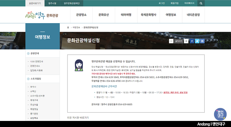 소수서원은 홈페이지 운영이 잘 되어 있어요. 서원에 대한 소개는 물론, VR을 이용한 가상 체험, 그리고 문화관광해설 신청까지 방문전 다양한 정보를 확인할 수 있답니다. 특히, 소수서원에 대해 자세히 알고 싶다면 미리 문화관광해설을 신청해두시면 해설사분께서 안내를 맡아 주신다는!! 전 예전에 부석사 현장에서 해설사분의 도움을 받은적이 있는데, 정말 재미있게, 귀에 쏙쏙 들어오게 설명해주셨어요.ㅎㅎ