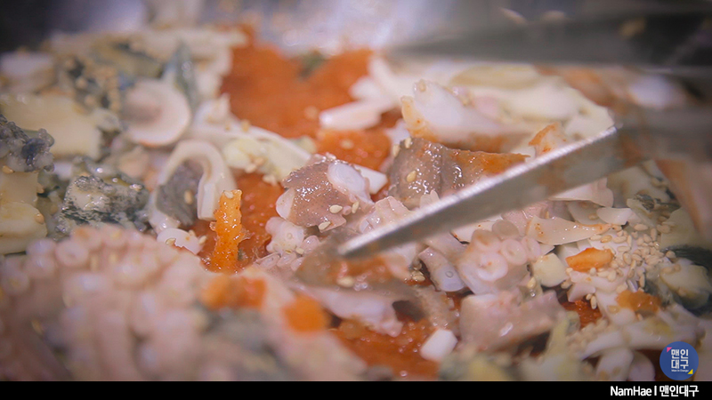 미리 검색했던 #전복스페션물회를 주문합니다. 잠시 후 사장님이 들고 오신 양푼이에는 #전복 #돌문어가 듬뿍 들어있었어요. 여기에 오징어 숙회까지 더해져 양이 꽤 많아 보이던 전복스페셜물회. 참, 물회는 2인분 이상부터 주문이 가능하다는 점 참고하세요. 사장님께서 직접 문어와 전복을 잘라주시고 물회를 섞어주신답니다. 양념장으로 조금씩 붉게 변하는 물회를 보고 있으니 어느새 군침 가득!