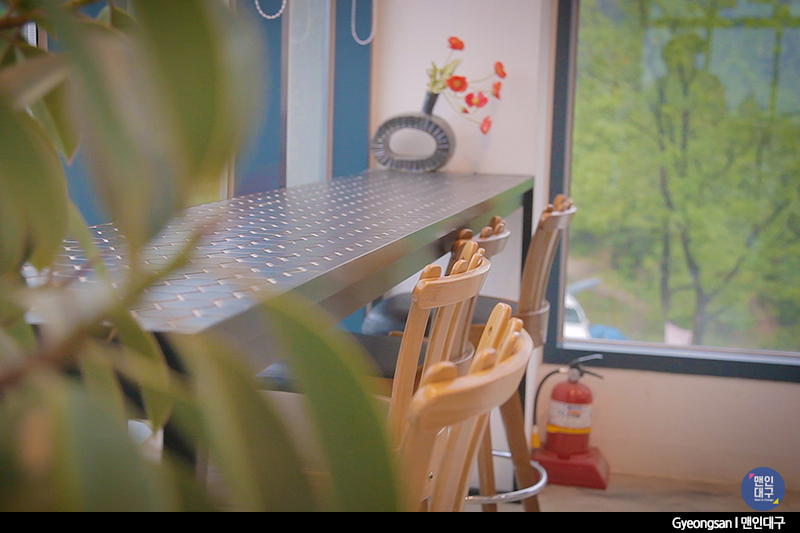 #아메리카노, #카페라떼, #티라미수 달달한 디저트를 먹으며 바라본 창밖은 온통 녹색. 그리스처럼 바다가 보이면 좋을 텐데, 경산은 내륙지역이라 카페 주변은 산으로 둘러싸여 있어요. 비록 바다가 아닌 산이지만, 그래도 휴식을 취하며 바라보는 창밖은 나름의 운치가 있어요.