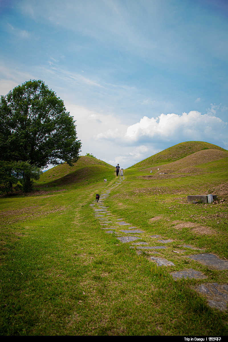 #코로나 여파로 실내보다 사람 간 거리가 그나마 멀리 떨어질 수 있는 야외를 많이 찾게 됩니다. 날이 뜨거운 여름이 다가왔지만 그래도 아직은 산책을 즐기기 괜찮은 날씨예요. #대구 #동구 #불로동고분군. 탁 트인 전망에 여기저기 솟은 고분 사이를 걸으며 푸른 하늘을 볼 수 있는 곳이에요.