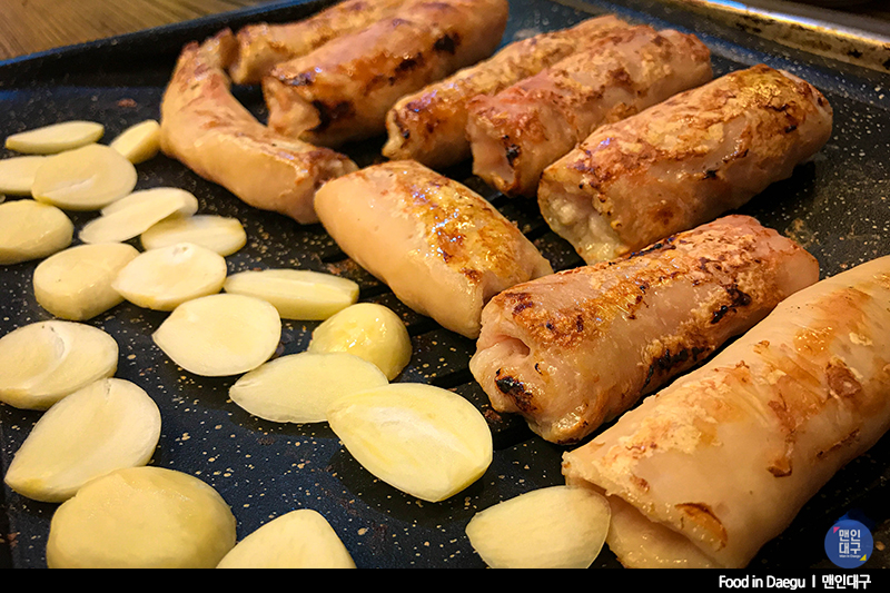 예전 포스팅했던 #막창도둑은 초벌 된 막창을 줬다면 이곳은 삶은 막창이 제공돼요. 김이 모락모락 피는 막창을 가열된 불판 위에 올리니 서서히 굽히기 시작합니다. 굽는데 시간이 오래 걸릴 것 같지만, 마늘도 굽고, 김치도 구우면서 식사 준비를 하다 보면 어느새 노릇노릇 굽힌 맛있는 막창이 눈 앞에 딱!