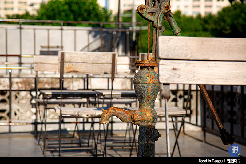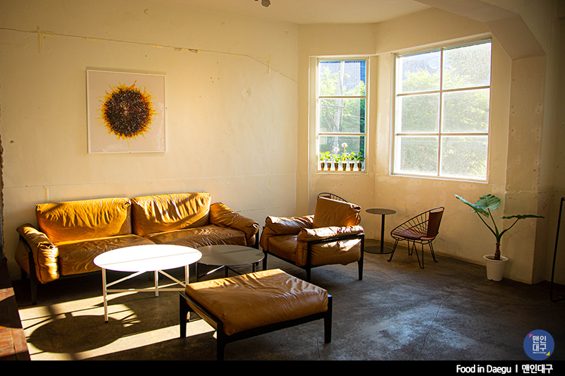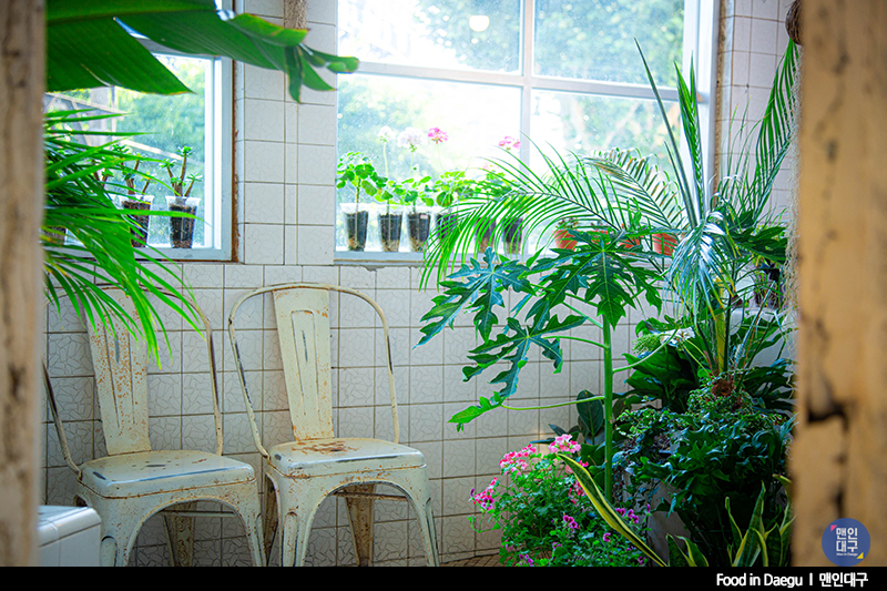 조금은 어수선한 분위기의 1층이었다면, 2층은 상대적으로 밝고 편안한 분위기를 만들어줬어요. 허물어질 듯 허물어지지 않은 외벽을 흰색 페인트를 칠해 한 층 고급스럽게 보인 #2층. 주로 단체석이 많아 구경하는 것으로 만족했어요. 2층 역시 사용되지 않는 공간은 식물을 비치해 삭막함에 생동감이 더해지는 마법의 효과가 발생!