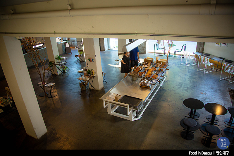 하얀 페인트가 듬성듬성 칠해져 어찌 보면 투박해 보이면서도 친숙한 내부가 방문객을 맞이해줍니다. 카페라기 보단 마치 #전시관의 느낌이 물씬 나는 1층 입구 주변. 중앙에는 베이커리가 전시되어 있고, 한편에서 주문을 받아 음료를 제공해줬어요. 음료가 준비되는 동안 1층 카운터 주변을 잠깐 둘러봤어요.