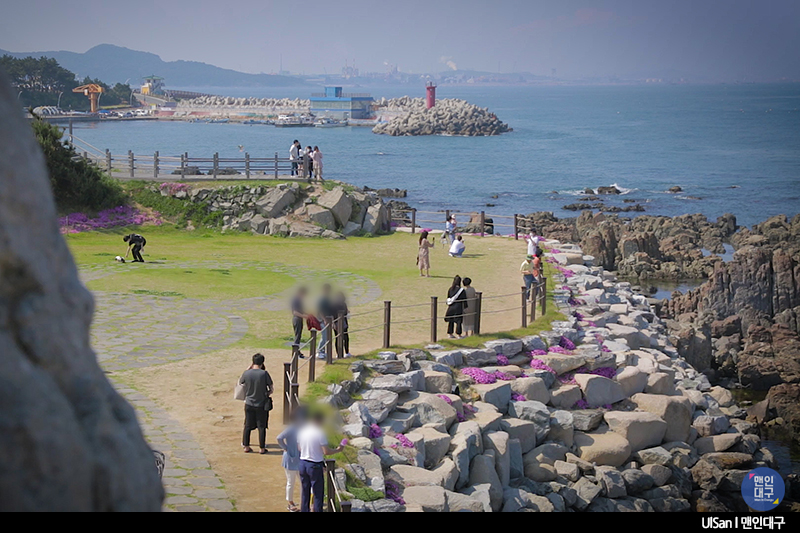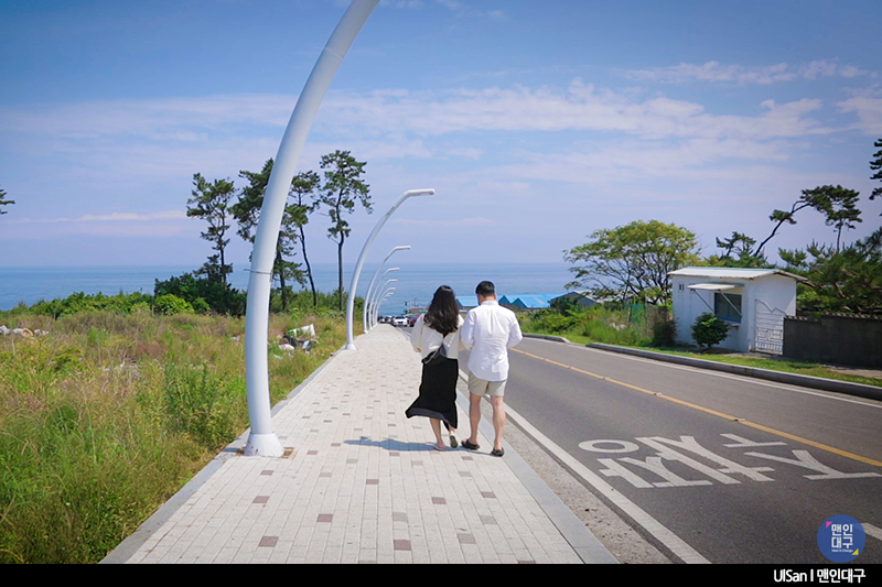 간절곶으로 향하는 해변도로는 차량통행이 불가능해요. 그래서 주차장에 차를 세워두고 #해변도로를 조금 걸어야 하죠. 하지만 차가 다니지 않아 안전하고 여유롭게 구경할 수도 있었어요. 급한 일이 없다면 해변가로 잠깐 내려가 보는 것을 추천드려요. 찰박찰박 돌에 부딪히는 파도 소리에 잠깐 휴식도 취해보고, 푸른 하늘과 바다를 배경 삼아 사진 하나 정도는 남기는 것 나쁘지 않잖아요?