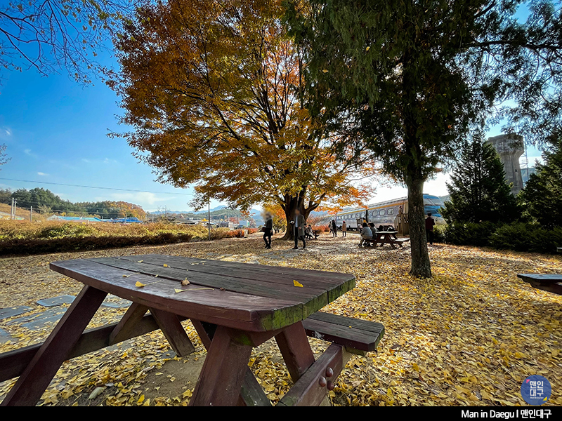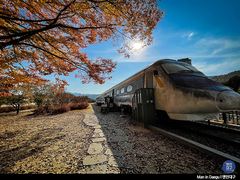 간이역만 보고 떠나기 아쉬워 역 주변을 조금 더 둘러보기로 했어요. 화본역 바로 옆, 예쁜 단풍나무 아래 폐기차가 서 있어요. #레일카페. 기차 내부를 카페로 만들어둔 곳이에요. 기차 여행 느낌도 내면서 잠깐 앉아 커피를 마셔봅니다. 굳이 카페에 들어가지 않아도 화본역 주변을 둘러보는 것만으로도 즐거운 단풍놀이 시간을 보낼 수 있었어요.