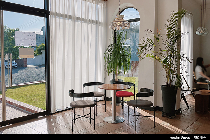 대구 지하철 2호선 연호역 1번 출구에서 도보 5분의 카페, 이런 골목에 카페가 있나?는 생각이 들 수 있지만, 하얀 외벽과 붉은 벽돌로 지어진 카페가 바로 눈에 들어옵니다. 아는 사람은 모두 안다는 카페, 잔디가 깔린 넓은 야외와 그늘막, 그리고 빈티지한 느낌의 실내가 힐링 장소로 딱. 넓은 주차장으로 차량 방문도 어렵지 않아요 다만, 들어오는 골목이 좁으니 주의하셔야 해요.