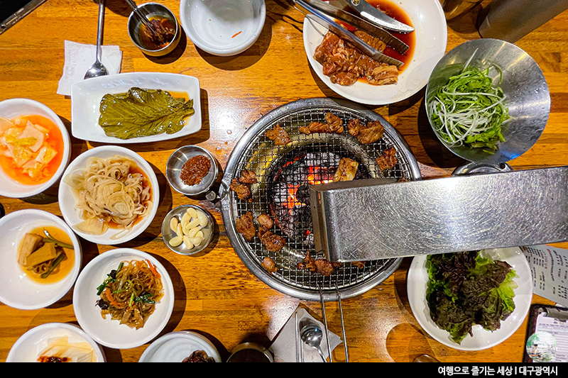 고기와 함께 준비된 밑반찬들.