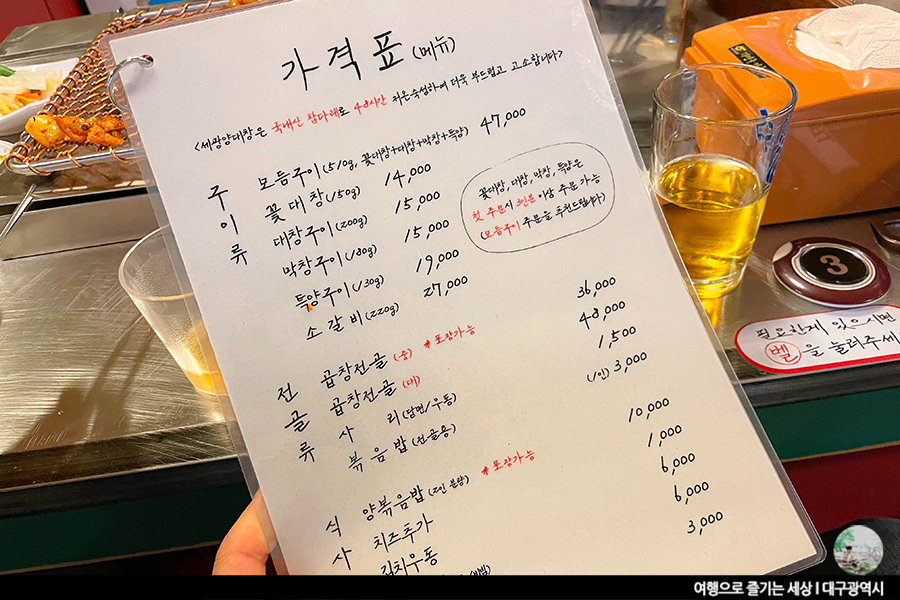 막창집에 가면 볼 수 있던 메뉴판들.