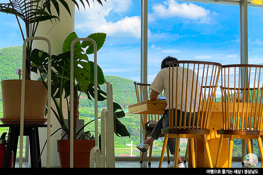 숲 속 뷰로 인기가 많은 카페.