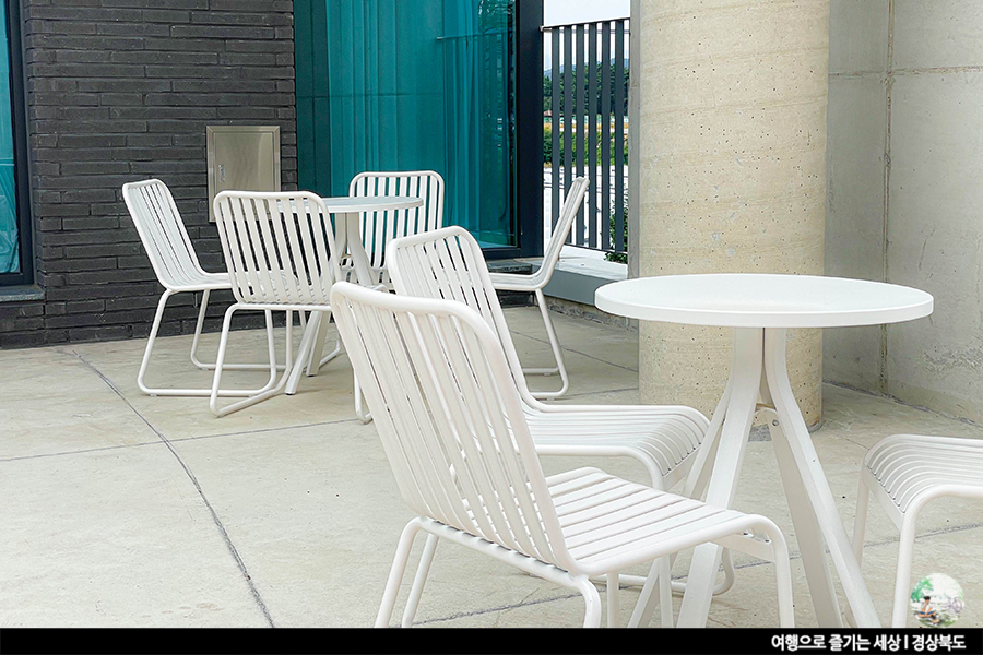 화이트톤의 철제 의자와 테이블이