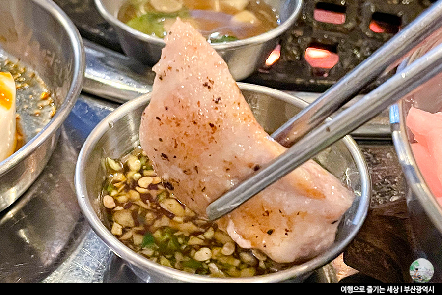 블로거님들은 돼지고기 먹을 때 어떤 소스에 주로 찍어 드시나요? 저는 생와사비를 좋아합니다. 예전엔 식당 가면 생와사비를 따로 달라 요청해야 했는 경우 많은데, 요즘은 생와사비 처음부터 주는 식당 많아졌어요. 이곳 역시 생와사비를 주는데, 이 외에도 코셔소스, 쌈장, 과일소스, 레드핫소스, 젓갈소스 등 여러 소스가 함께 세팅되더라고요. 기호에 맞게 고기를 찍어 먹을 수 있었답니다. 그래도 전 생와사비가 가장 좋았다는!