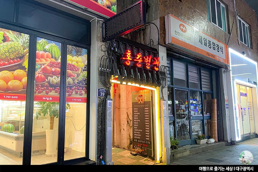 대구 동구 동부로 30길 39-1. 대구의 KTX가 정차하는 동대구역 근처에 있는 식당이에요. 대구맛집 꽤 많은 이곳은 술집과 식당이 많아 많은 이들이 찾는 동대구역 앞 거리에서 왜 지나가면서도 제대로 몰랐었을까요? 가정집을 수리해 식당으로 사용되는 곳 많죠? 홍춘별관 역시 그랬어요. 많은 식당이 도로가에 모여 있다면, 이곳은 간판은 앞에 걸려 있지만, 건물사이의 골목으로 들어가야 식당을 발견할 수 있답니다.