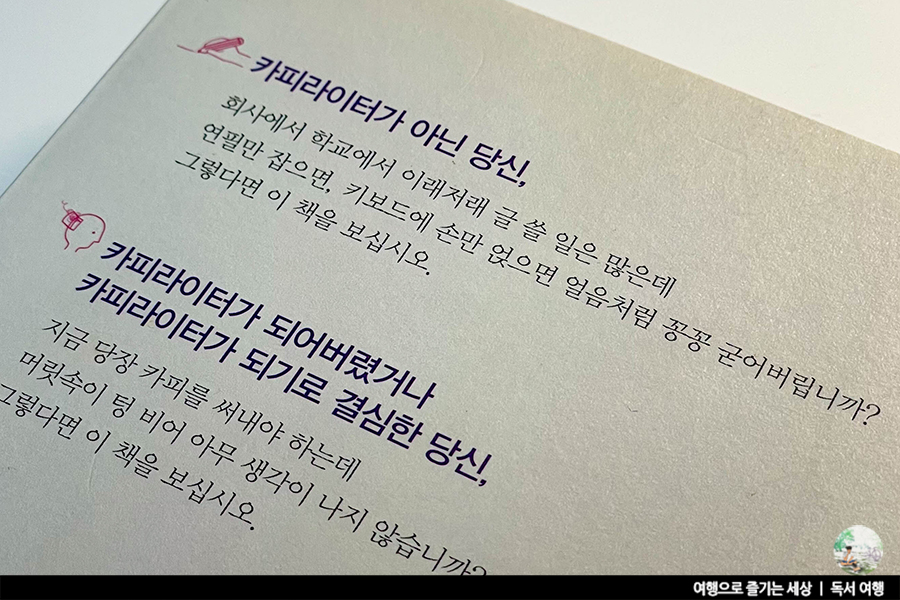 블로그에 글을 쓰다 보면 욕심이 나기 시작합니다. 재미있게 쓰려는 욕심 보다 제 글을 누가 봐도 쉽게 읽히는 글을 쓰고 싶어요. 그래서 글 잘 쓰는 법, 글짓기 연습 등의 정보를 보고 따라 하곤 합니다. 하지만 쉽지 않은 글쓰기. 예전에 구입해 글쓰기 연습에 참고한 책인데, 글을 쓰고 싶어 하는 분들께 도움 될 것 같아 오늘 소개해 드립니다.