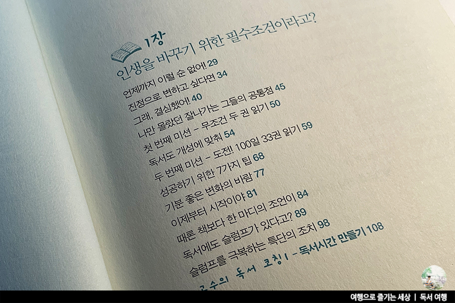 독서를 통해 무엇이 바뀔 수 있을까요? 사실, 책 한 권으로 인생이 달라진다면 그 책은 정말 최고의 책이자 변화한 사람도 대단한 사람일 것이에요. 대부분 책을 통해 인생이 바뀔 수 있을 것이란 믿음을 가지진 않아요. 하지만 밑져야 본전이라고 그래도 책을 읽지 않는 사람보단 읽은 사람이 조금은 더 낫지 않을까요?