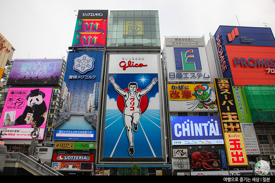 오사카를 여행한 사람들의 사진첩에 꼭 있는 이 사진. 바로 두 팔을 힘껏 편채 달리는 쿠리노 러너의 간판이에요. 이 사진만 보면 오사카의 도톤보리 다녀 왔다는 것을 누가 봐도 알 수 있어요.