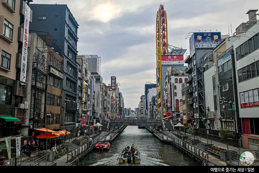 도시가 형성되기 위해선 물류이동의 편리성이 큰 요인 중 하나예요. 그래서 서울이나 부산 등 강과 바다를 낀 곳이 대도시로 발전합니다. 일본 역시 바다와 강이 많아 물자 수송을 위한 수로가 많이 발달 되어 있데요. 지금은 배 보다 빠른 이동수단이 많이 생겨 인공수로의 기능이 줄어들었어요. 대신 도톤보리를 구경하는 유람선을 띄워 관광 수단으로 역할을 톡톡히 하고 있어요.