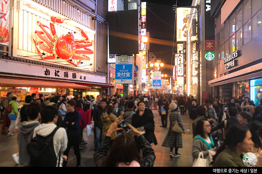 도톤보리에 도착하니 수많은 인파로 가득합니다. 관광객이라면 꼭 들른다는 도톤보리는 관광객뿐 아니라 현지인도 많이 방문하는 핫스팟이에요.