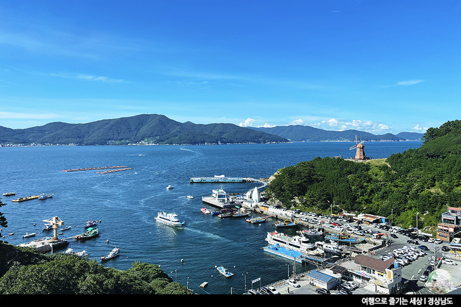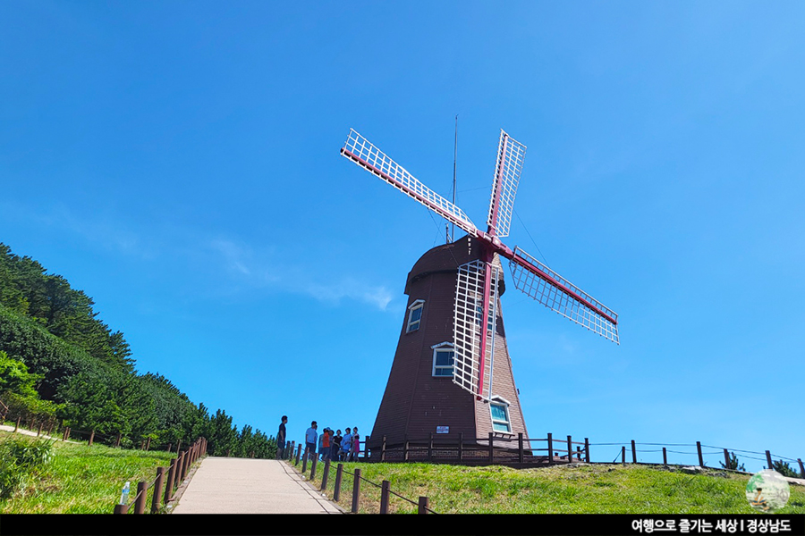 거제의 예쁜 바다풍경과 함께 풍차가 있는