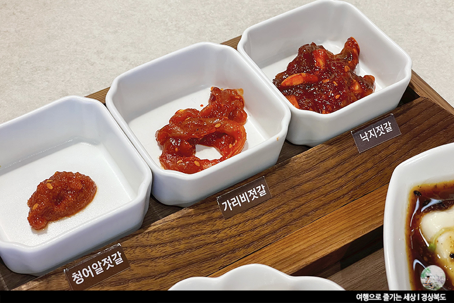 짭쪼롬하면서도 매콤한 젓갈들을 올려