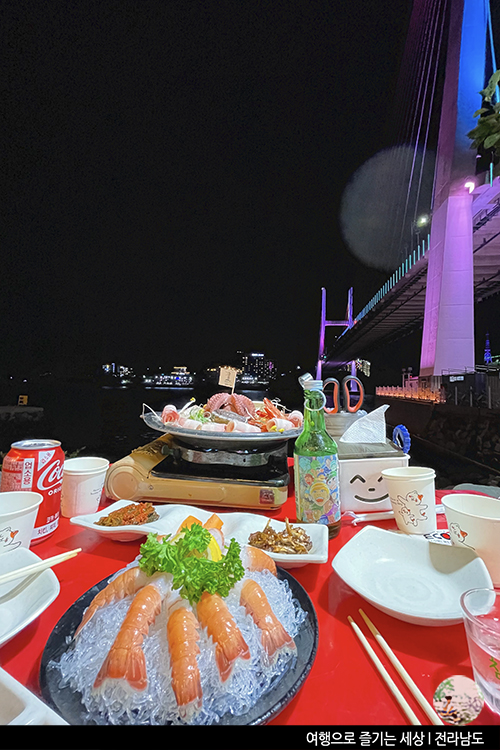 여행으로 즐기는 세상 전라남도 여수 낭만포차거리에 있는 포차 중 한 곳인 77번 갯뻘소리 다녀왔어요. 돌산대교가 바로 정면에 보이는 뷰가 멋진 곳이에요. ▼ 여수여행 1일차 코스 정리 ▼ 여