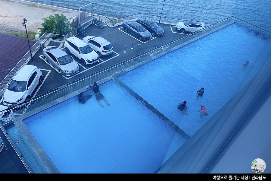 잠깐 휴식 후 온수풀로 내려갔어요.