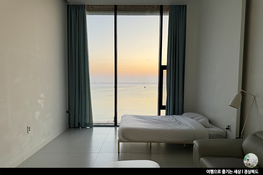 숙소 체크인 후 먼저 객실에 짐을 풀러 올라갔어요. 생각보다 큰 룸이 마음에 듭니다. 침대 옆 큰 창문이 있는데 바로 이 창문이 포인트예요. 아침에 침대에 누운 채 일출을 볼 수 있다는 소문이 자자했거든요. 내일 아침 멋진 해를 볼 수 있길 기대합니다.