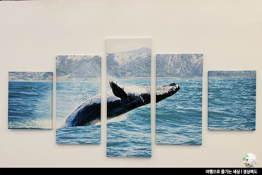 카페 벽에 걸린 액자 속 고래에 눈이 갔어요.