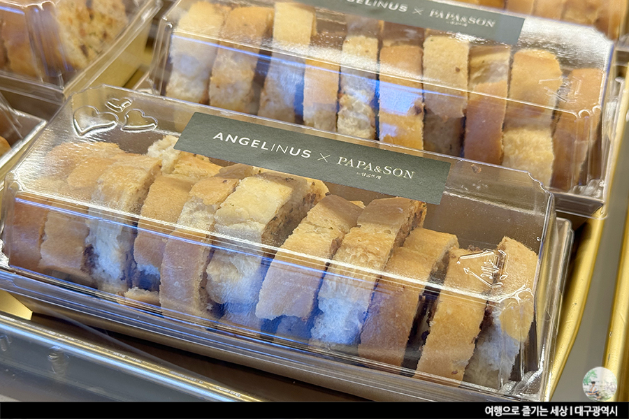 대구 수성못 카페 엔제리너스 아일랜드점의 베이커리들이에요. 하나 같이 맛있어 보이는 빵들이 가득했고요,