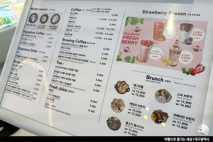 겨울은 딸기 시즌이죠? 시즌에 맞게 딸기 관련 메뉴가 매대의 절반을 차지할 정도였답니다.