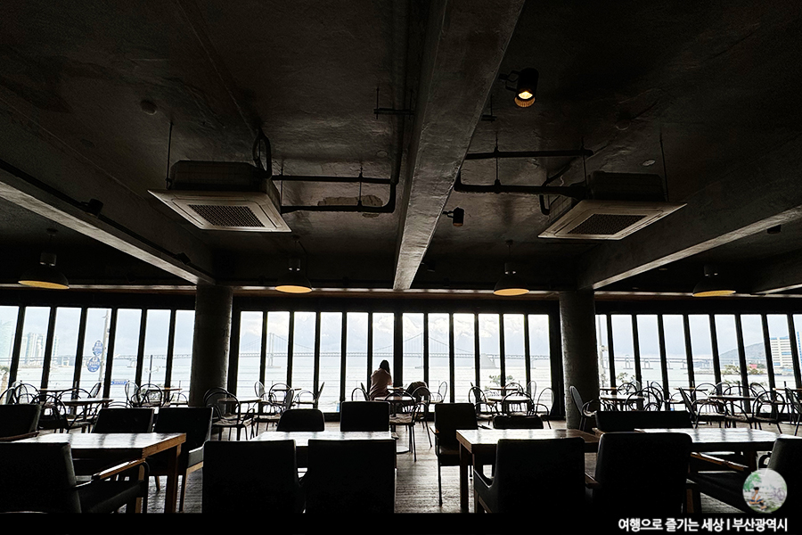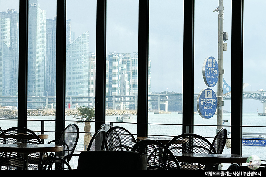 카페 밖으로 보이는 창밖 풍경을 보면 왜 이곳이 인기가 많은지 바로 이해가 됩니다. 광안대교가 눈 앞에 쫙 펼쳐지거든요.