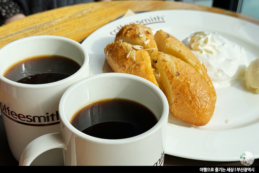 조식을 먹었어도 빵 들어가는 별개 아닌가요? 커피와 함께 광안리의 아침을 즐겨봅니다.