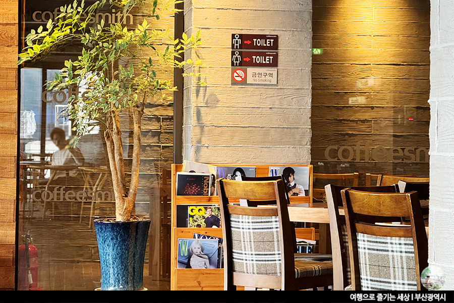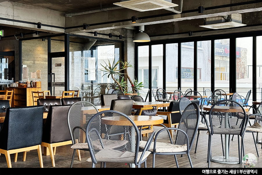 커피스미스 광안게스후점은 방문할 때 마다 사람이 많았던 광안리 카페 였어요. 창가 자리는 한 번도 앉아보질 못했는데, 이날은 앉고 싶은 자리 어디든 앉을 수 있게 되었군요.
