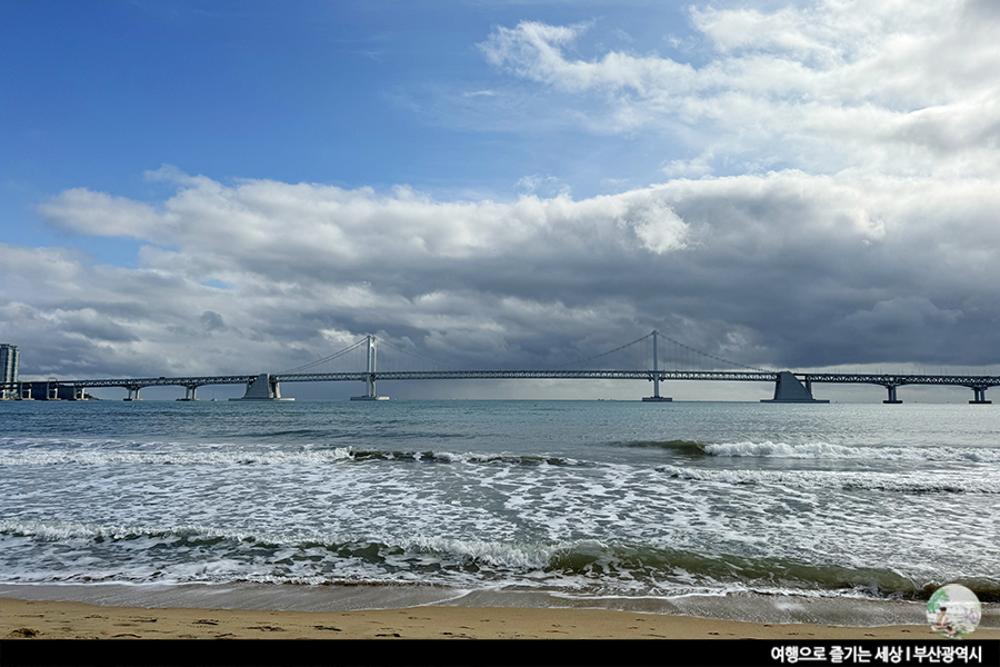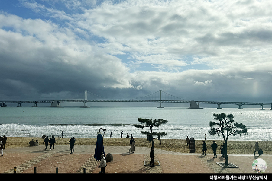 이번에는 1박 2일로 왔는데, 전날엔 비가 내려 광안리 해변을 걸어보지 못했어요. 다행히 둘 째날은 구름은 많았지만 다행히 비는 그쳤어요.