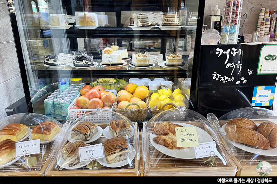 1층 입구에 들어가니 바로 카운터가 나타납니다. 매대에는 달콤해 보이는 디저트들이 진열되어 있어요. 맛있어 보이지만, 점심을 먹고 방문한 터라 디저트는 빼고 음료만 마시기로 했어요.