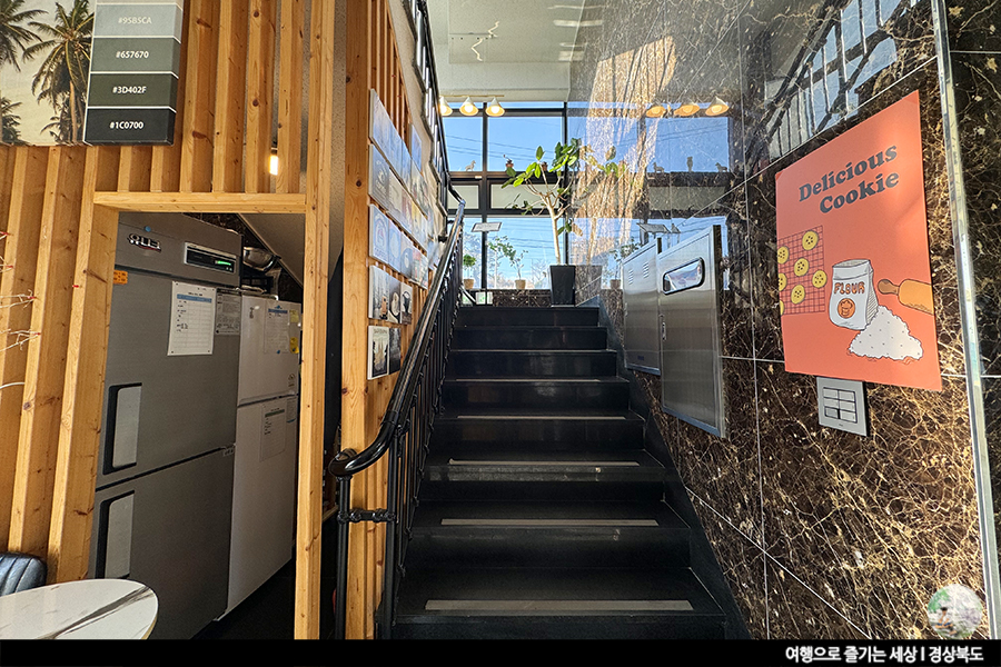 포항 구룡포 해수욕장 카페 루치아의 1층은 앉을 만큼의 여유로운 공간은 없었어요. 카운터와 함께 바로 2층으로 올라가는 계단이 있거든요. 음료를 주문 후 2층으로 올라갑니다.