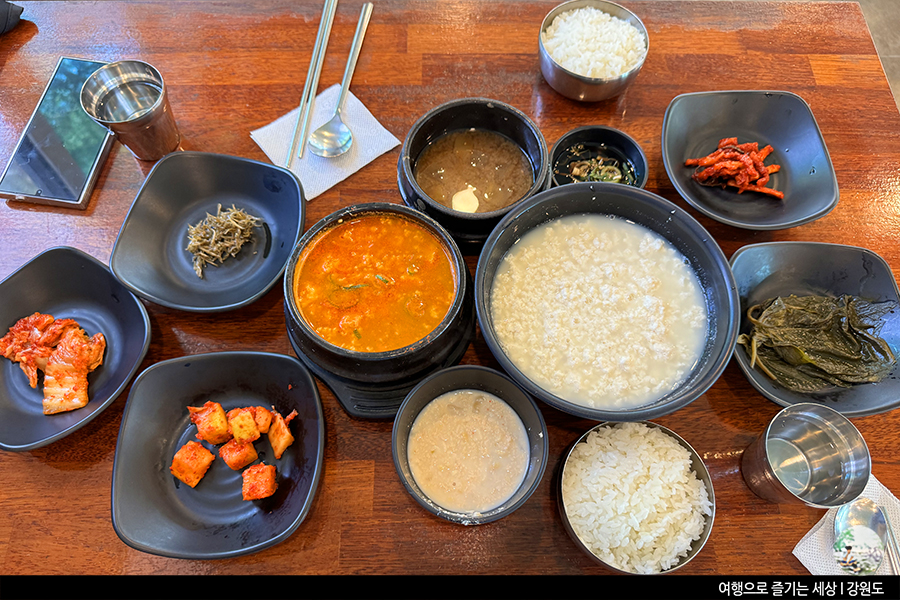 한국 전쟁 이후 살림이 어려워진 초당동 일대에서는 두부를 만들어 강릉시내로 내다 팔았데요. 이때 깨끗한 바닷물을 간수로 써 만든 두부가 유명해지면서 지금의 초당순두부가 나오게 되었다 해요. 한국의 역사가 담겨 있는 식사랍니다.
