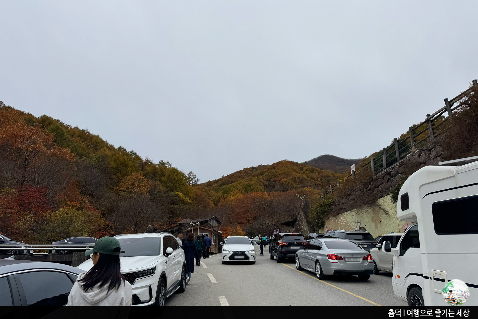 느릿느릿 움직이거나 아예 정차해 움직이지 않는 경우도 허다했어요. 알고보니 삼성궁의 주차장이 만차라 더이상 차량 진입이 불가능 했기 때문이에요. 그래서 주차장이나 주변의 차량이 빠져야 차량이 한 대씩 올라가는 상황이 이어집니다. 2km의 거리를 약 1시간 만에 도착할 수 있었어요.