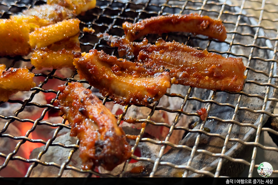 숯불 위에서 조금만 구워 먹으면 돼요.