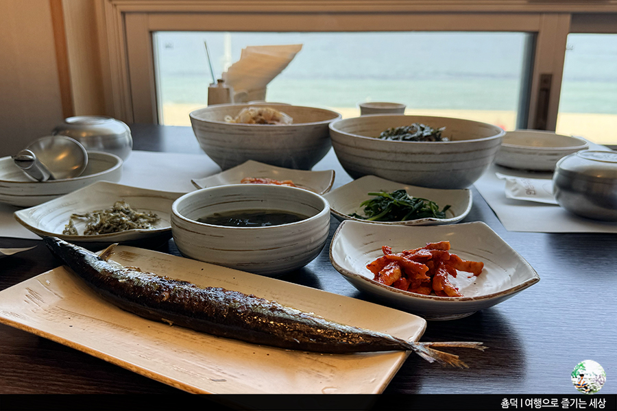 김치에 꽁치가 나오는 안목해변 횟집 해송.