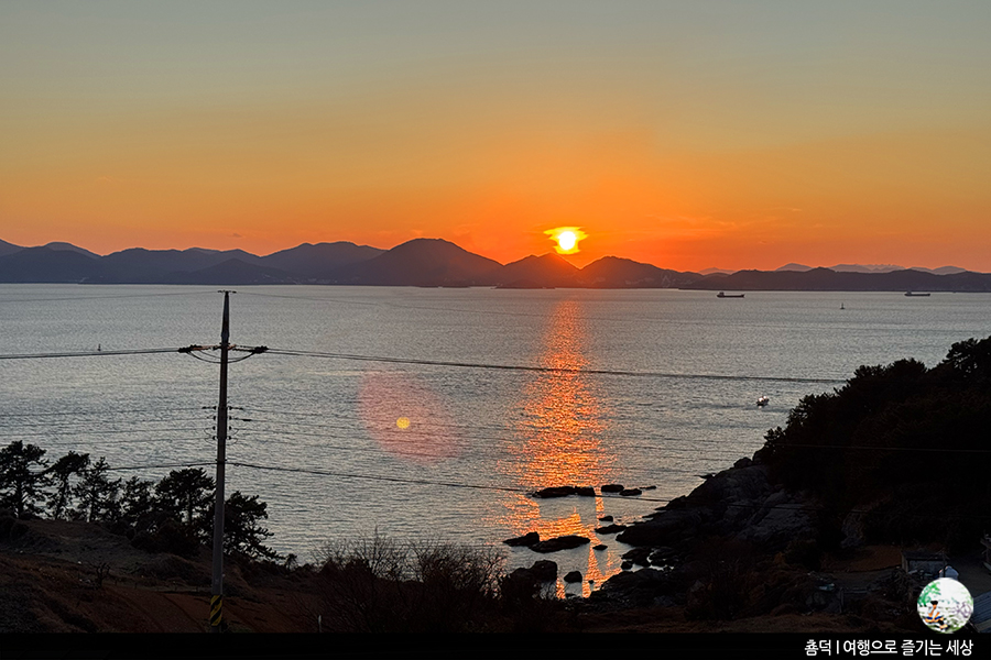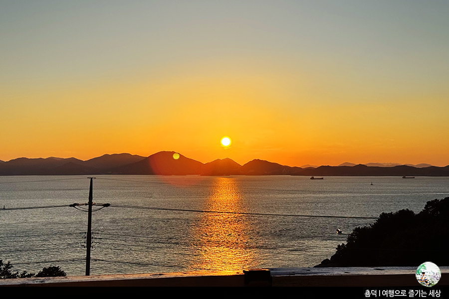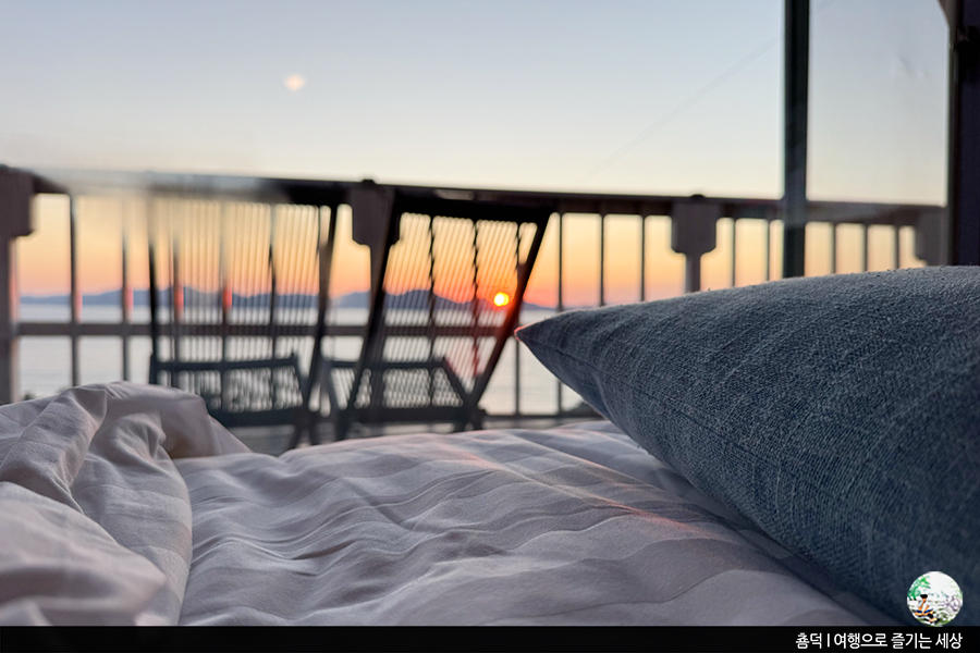 남해 일몰 맛집으로도 손색없을 만큼 예쁜 노을이죠? 이런 예쁜 풍경을 침대에 누워 볼 수 있다니, 오늘 열심히 돌아다닌 보람이 느껴졌답니다. 왜 남해 가성비숙소로 추천되고 있는지 알겠더라고요.