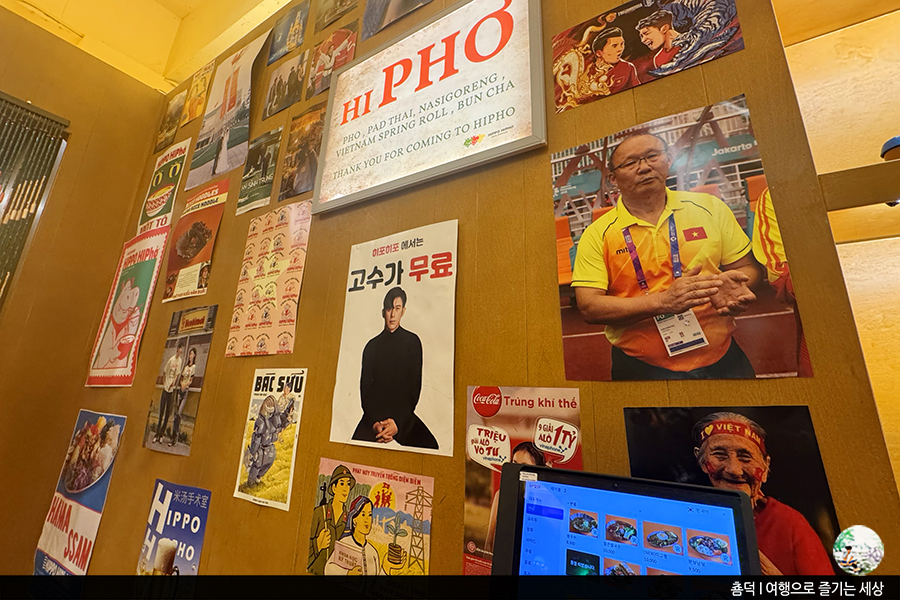 보통 베트남식당이라 하면 베트남 모자나 베트남 옷 등 전통적인 물품이 많은데 이곳은 조금 달랐다. 벽면은 포스터로 되어 있었는데, 한국과 베트남의 공통적인 부분이 주로 채워져 있었다. K-Pop이나 박항서 감독 등 공통 관심사 덕분에 조금 더 친숙한 느낌이랄까?