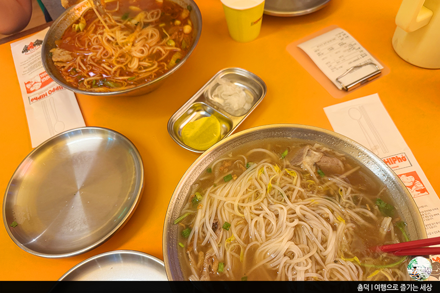 잠시 후 주문한 음식이 나왔다. 나는 양지가 들어간 기본 쌀국수를, 매운 음식을 좋아하는 얼큰 쌀국수를 주문했다. 쌀국수 가격이 8,000원인데 양이 제법 많았다. 국물 역시 시원해 먹기 딱 좋았다.