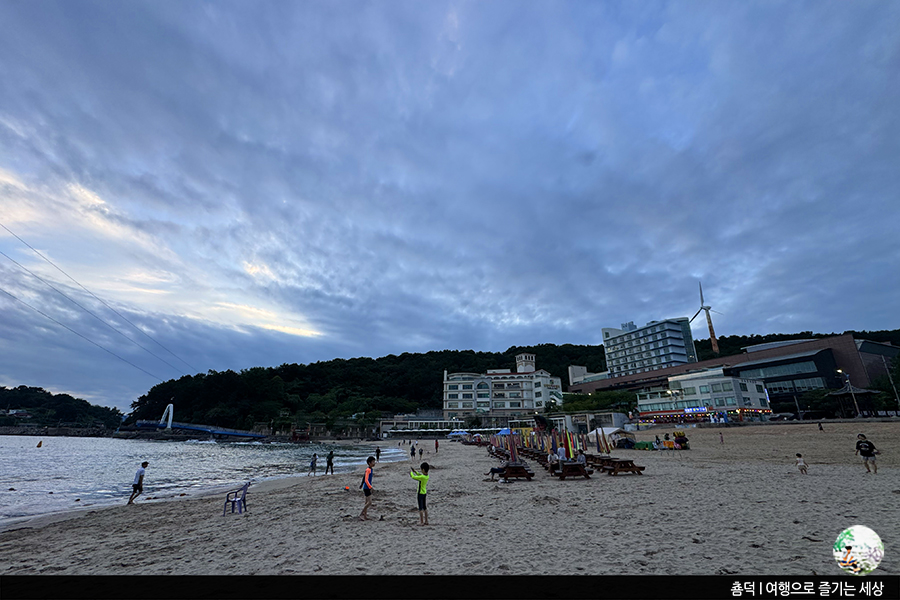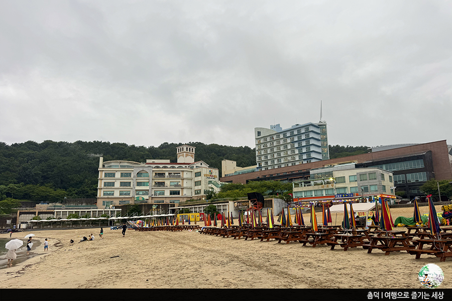 우리가 묵은 숙소 남일대리조트 바로 앞에 있는 남일대해수욕장. 숙소를 이곳으로 고른 이유 중 하나가 바로 바닷가가 바로 앞에 있어서였다. 물놀이를 즐긴 후 바로 숙소에 들어와 씻을 수 있다는 것이 포인트.