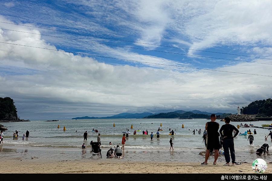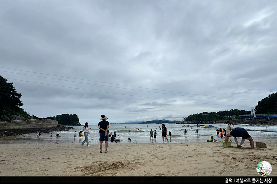 오후가 되자 다행히 비가 그쳤다. 하늘이 흐렸지만, 그래도 비가 그친 게 어디랴, 바다까지 와서 바닷물에 발도 한 번 담가보지 못할까 걱정이었다. 그래도 해수욕장에 들어가 볼 기회는 주는구나.