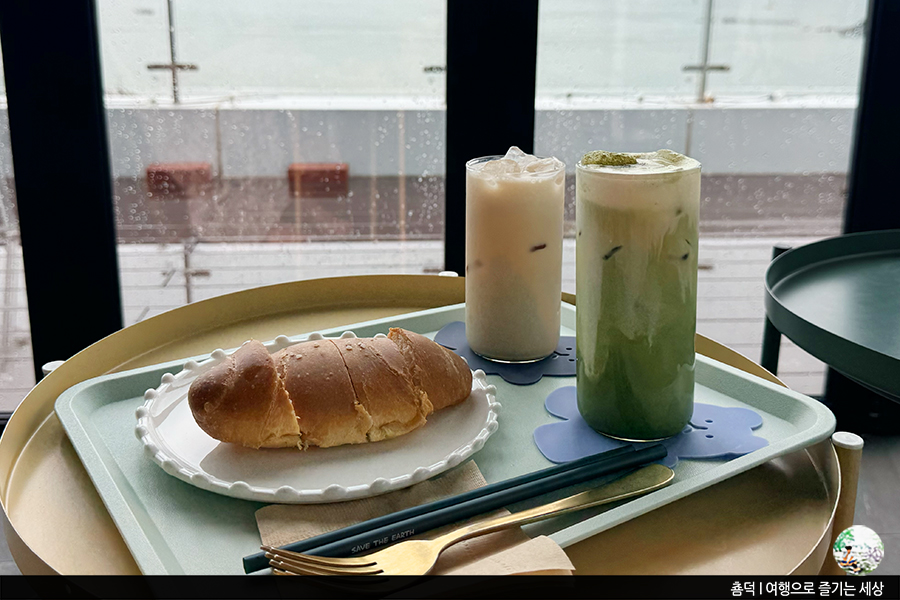 아침은 먹었지만, 역시 빵과 커피는 또 들어간다. 커피보단 달달한 말차와 밀크티 그리고 소금빵을 함께 먹으며 오전을 보냈다. 점심시간이 다가오자 조금씩 하늘이 맑아지는 게 보여 오후에는 해수욕을 할 수 있을 듯 해 기분도 좋아졌다.