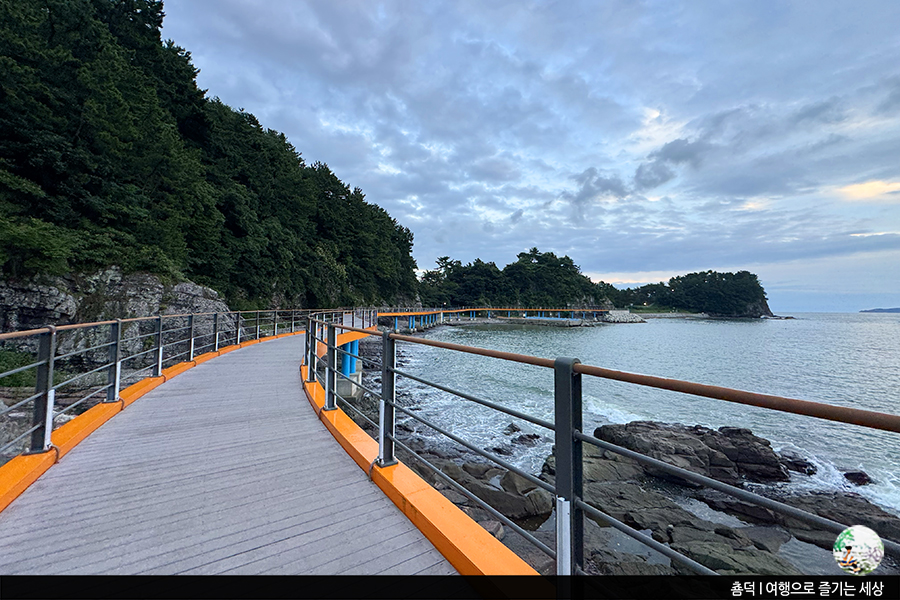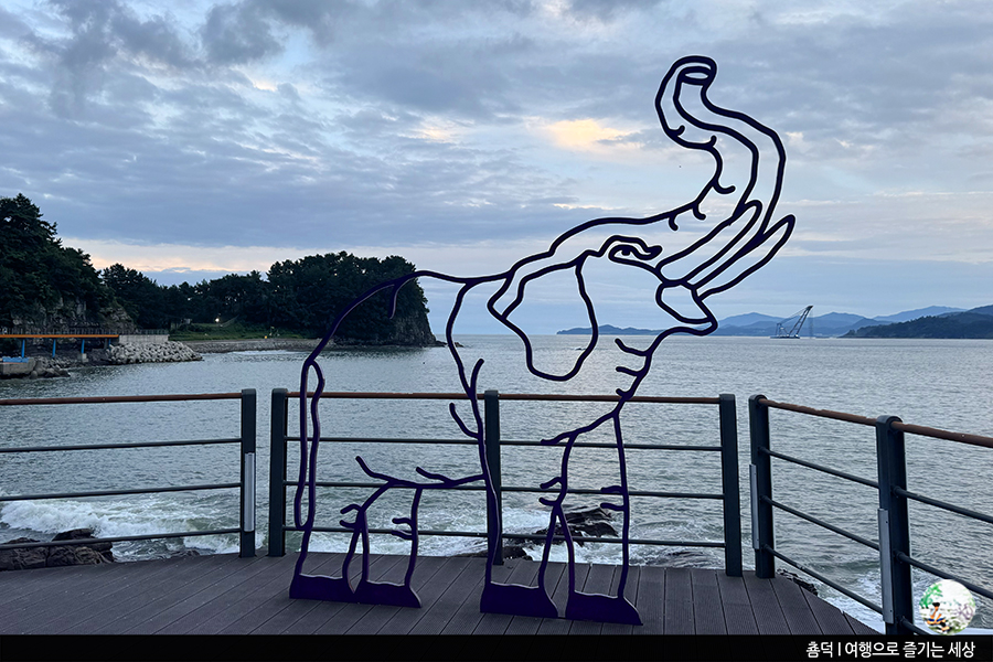 남일대 해수욕장 옆으로 만들어진 데크를 따라 코끼리바위로 갈 수 있다. 하지만 우리는 저녁때 산책 겸 둘러본 것이라 바위까지 갈 수 없었다. 데크가 바위 끝까지 연결된 것이 아니라 중간에 돌 위를 건너야 하기 때문이었다. 그런데 이곳은 물때가 맞지 않으면 바닷속에 숨어 있어 지나갈 수가 없었다.