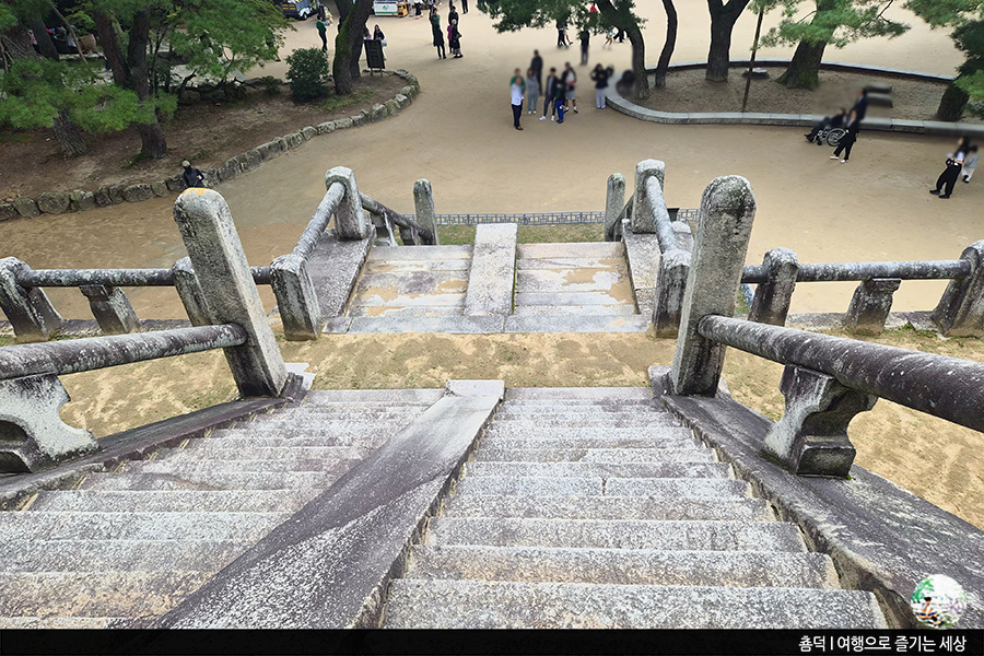 자하문 계단을 오르내릴 순 없지만, 대신 대웅전쪽에서 나오는 문에서 계단을 이렇게 내려다볼 순 있다.
