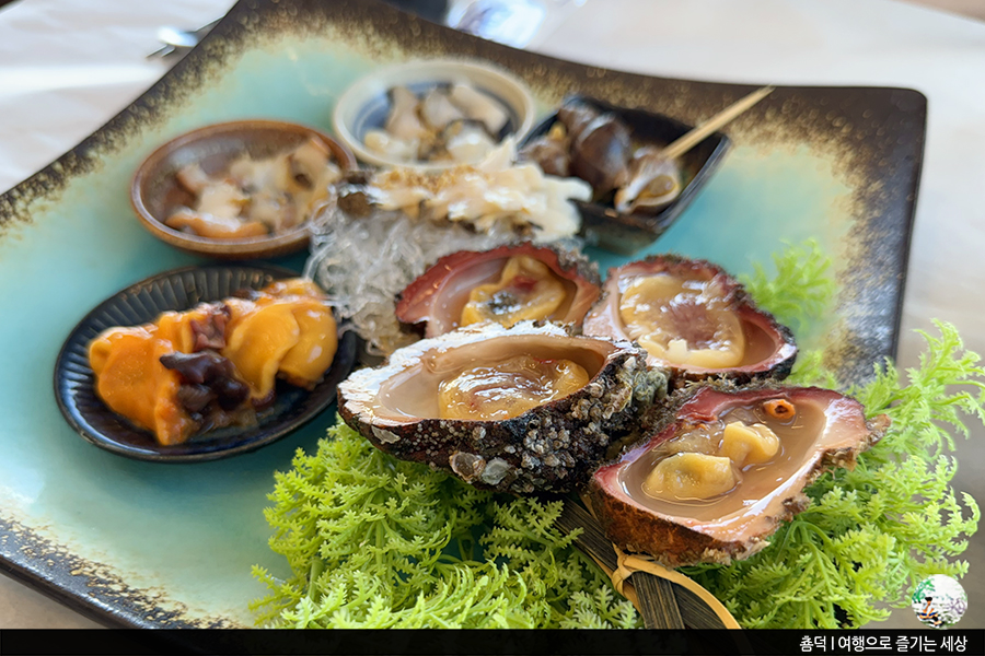 해산물은 두 종류의 멍게가 나왔는데, 멍게가 마치 전복껍데기처럼 생긴 껍데기에 담겨 나왔다. 돌멍게라 한다. 일반 멍게보다 멍게향이 조금 적어 조금 더 쉽게 먹을 수 있는 데다 맛도 한층 좋아 바다향이 듬뿍 느껴진 녀석이다.